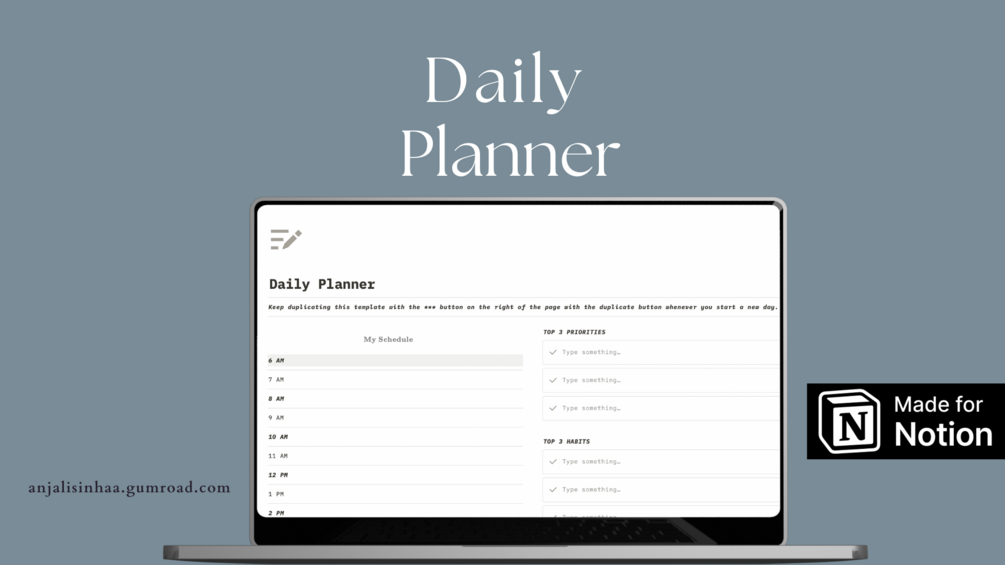 A simple yet powerful Notion template to help you start each day with purpose and end it with peace of mind.