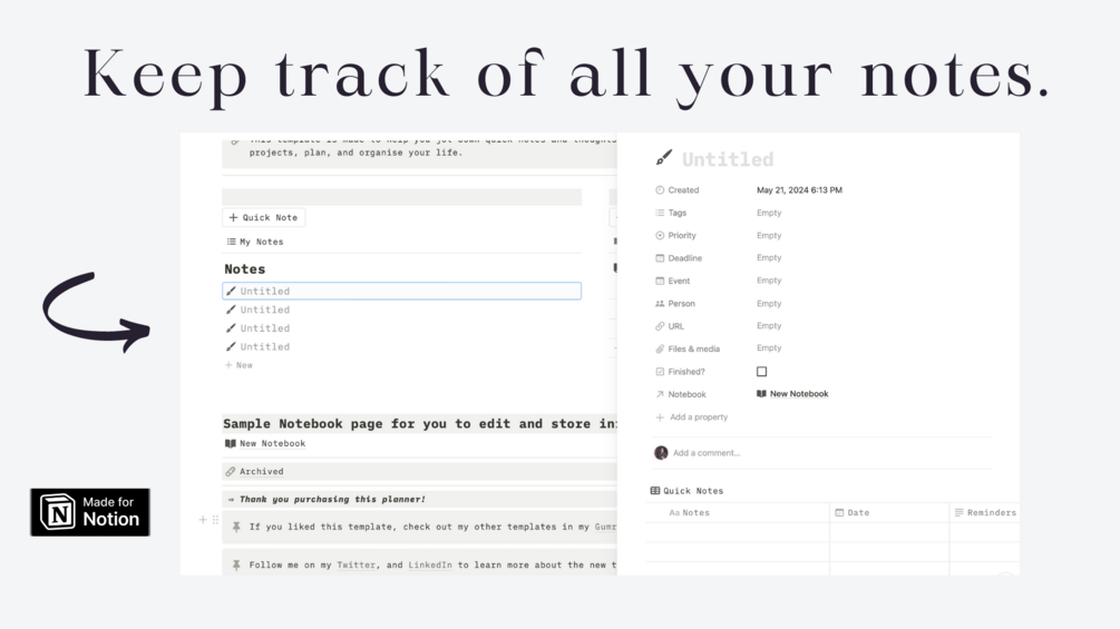 Simplify your note-taking and stay organized with the Simple Notebook Notion template. Get started today and experience the ease of having all your notes in one well-structured place.