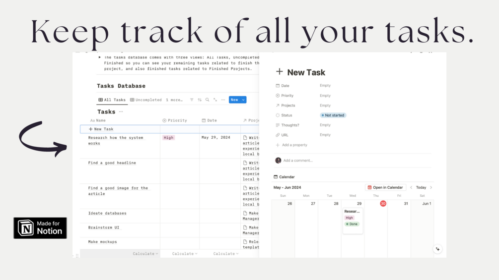 - User-Friendly: Perfect for both Notion beginners and power users, this template is easy to use and adapt to your needs.